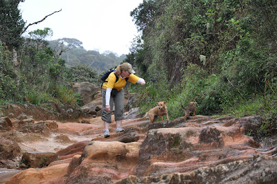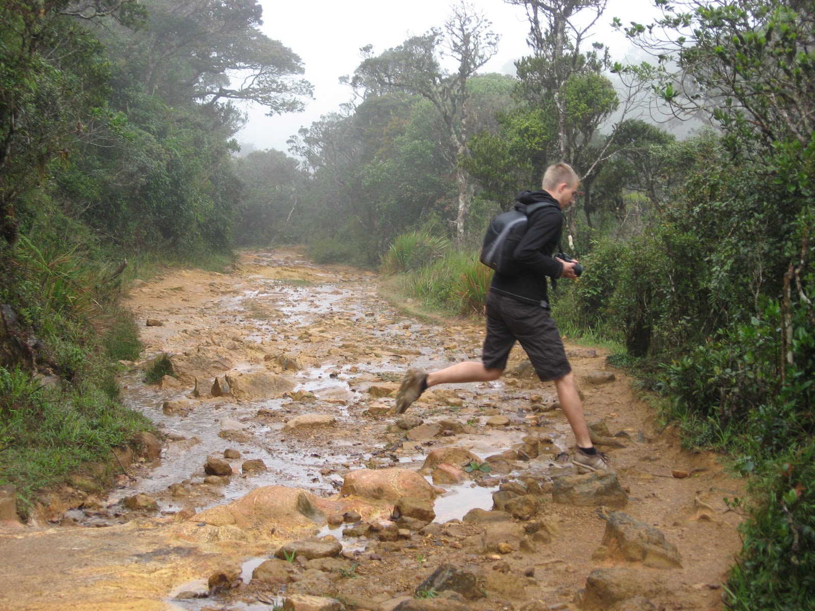 Po kakšni uri ali dveh sva prispela na planoto Horton oz. pred vhod v nacionalni park. Po plačilu vstopnine (ni ravno poceni), sva začela hoditi. V začetku tlakovano pot je kmalu zamenjala razmočena rdečkasta prst, saj je tukaj vsak dan malo deževalo. Tudi naju je v začetku hladil rahel prš.